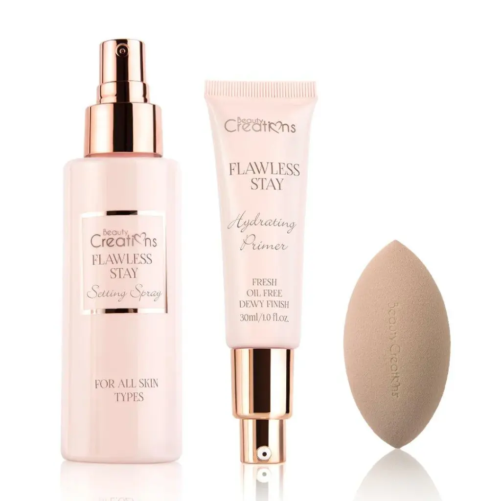 Prepara y prepara tu maquillaje de forma experta con el set Flawless Stay All You Need Prep and Prime. Consigue un acabado impecable y duradero con el spray fijador, la prebase hidratante y la esponja difuminadora.