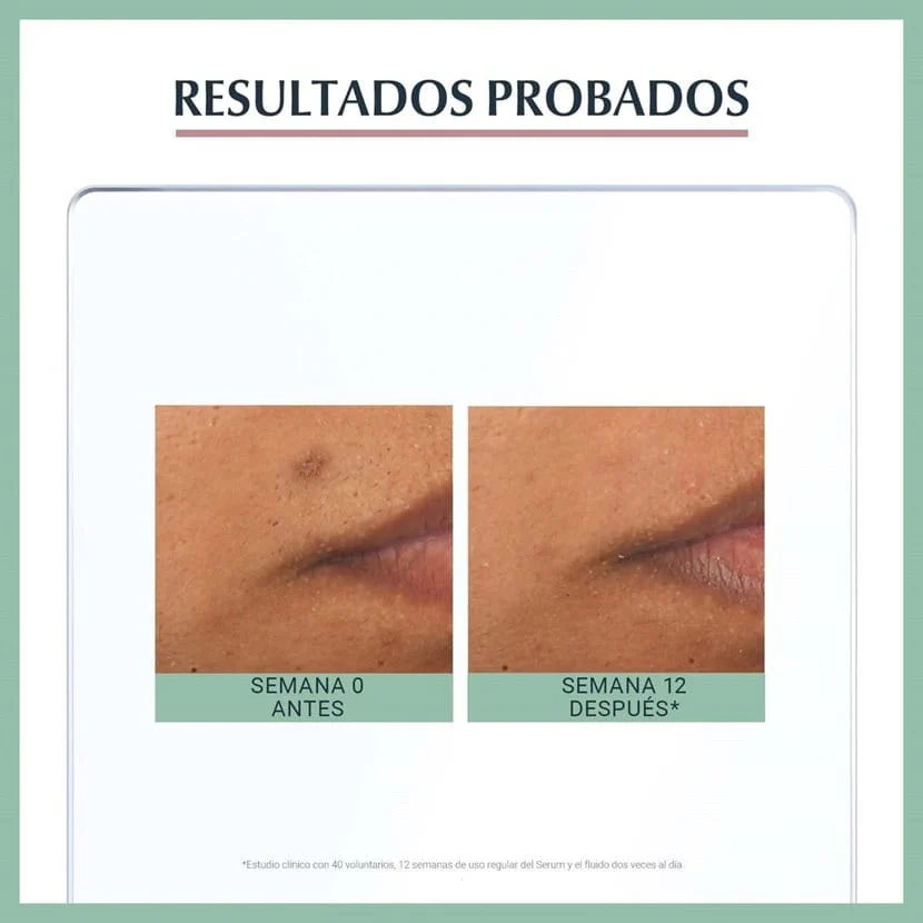 Anti-manchas: FPS 30 (UVB+ UVA) protege del oscurecimiento inducido por el sol de las manchas post-acné y previene su aparición. Anti-imperfecciones: Reduce eficazmente las imperfecciones y calma la irritación. Anti-brillos: Proporciona un acabado mate de larga duración
